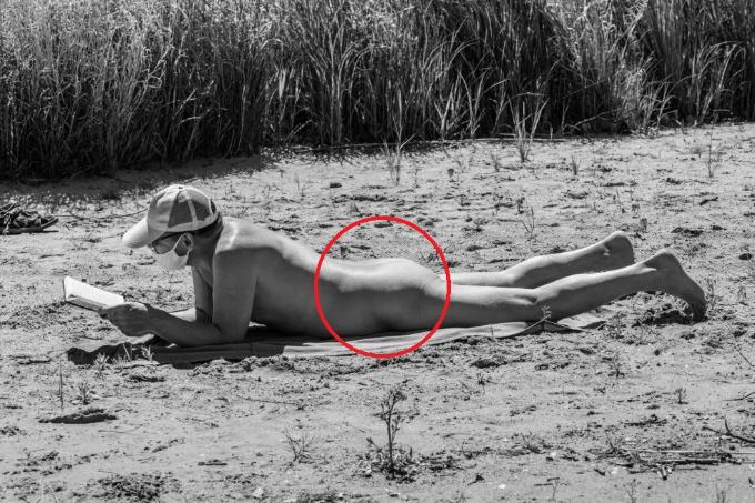 I don't think a side-profile image of somebody with an exposed derriere goes against the rules.