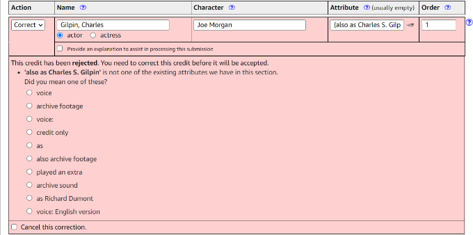 So, according to this thread of mine, when a person is credited different, there should be an "also as" attribute to show the different name. However, this does not seem to work, at least for cast members.