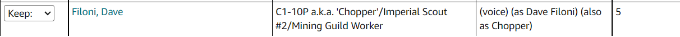 Star Wars: Rebels, I can see Dave Filloni has an "also as" attribute (and confusingly an "as" attribute that is the same as his name.)
