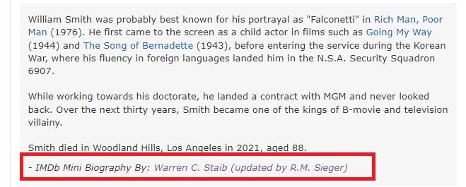 Biography which was approved is now no longer at actor (William Smith)'s page: