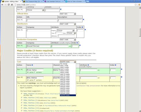 Maybe what I need to do is send in the New Title Submission Form with just the main cast member names, and when the film is accepted, I can add the extra names later. How does that sound?