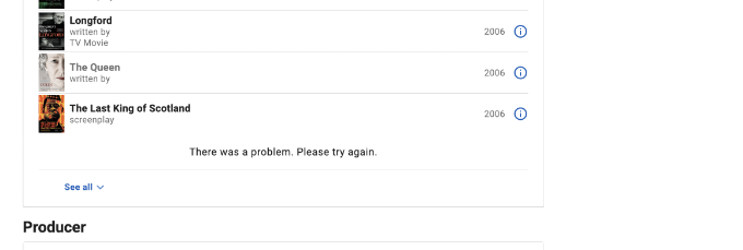 Nothing works! You cannot add anything, you cannot see lists of directors, writers, or any history at all! You have literally ruined this website with this new layout. I have tried repeatedly to remove a film I was working on but it won't let me! It just freezes and says 'Error - checking updates'.