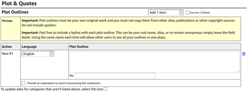 Secondly, it is also now accessible in our regular contribution interface, primarily accessed via the button at the bottom of every title page. When contributing a new plot outline, a language field is now visible (and defaults to English):-