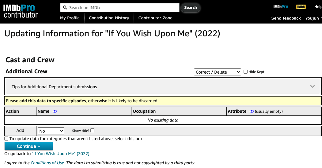 I would like to correct/delete credit information in <If you wish upon me>.