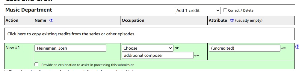 I am Josh Heineman, Composer. I wrote and produced all of the music for the WW2 Battles in Color 6 episode series on the Smithsonian channel, which aired in the UK and the USA. My name was listed in the credits as Joshua Heineman (which is my legal name) although I usually write under the name Josh. Unfortunately, the credit was given to another Joshua Heineman who did not write the music but has been given credit for it automatically (I assume). My effort to alter this has been rejected. I have documentation proving that I am the composer including BMI royalty statements, contracts from the production company, all of the filed cue sheets, etc. Does anyone on this forum know how to best deal with this? I really need that credit to be on my page, no disrespect to the other Joshua Heineman!