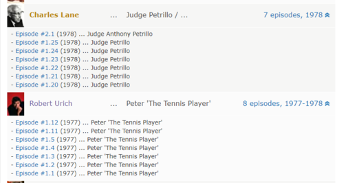 Robert Urich appears to be out of order, because the count shows 8 episodes. But when expanded, he only has 7: