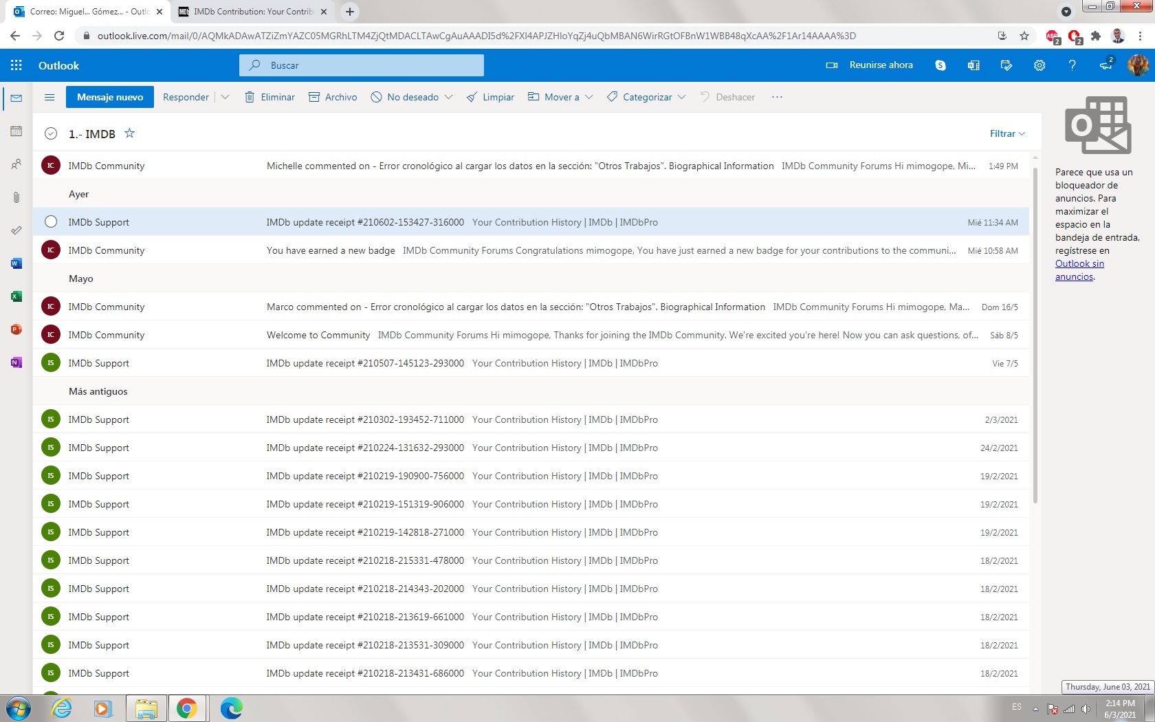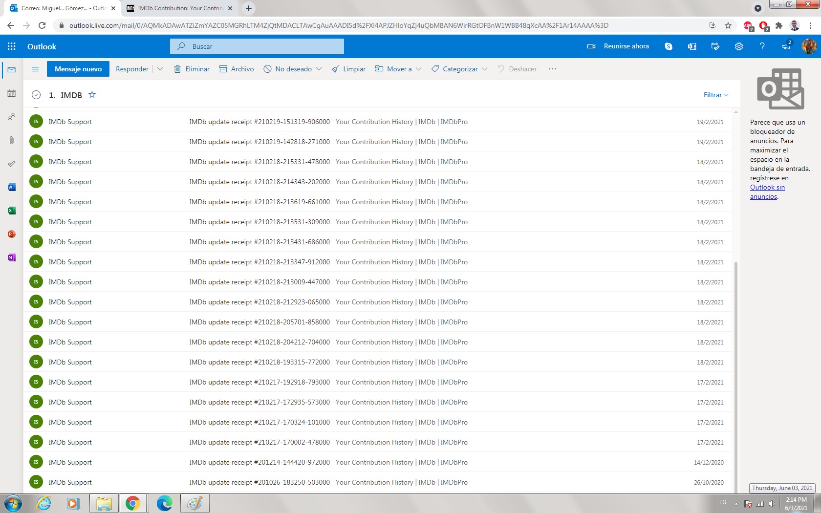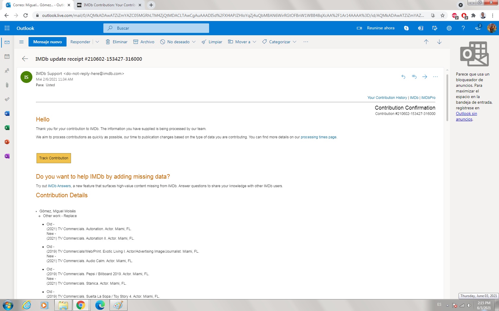 Buenos días, apreciado equipo de soporte de IMDB, mi problema es: