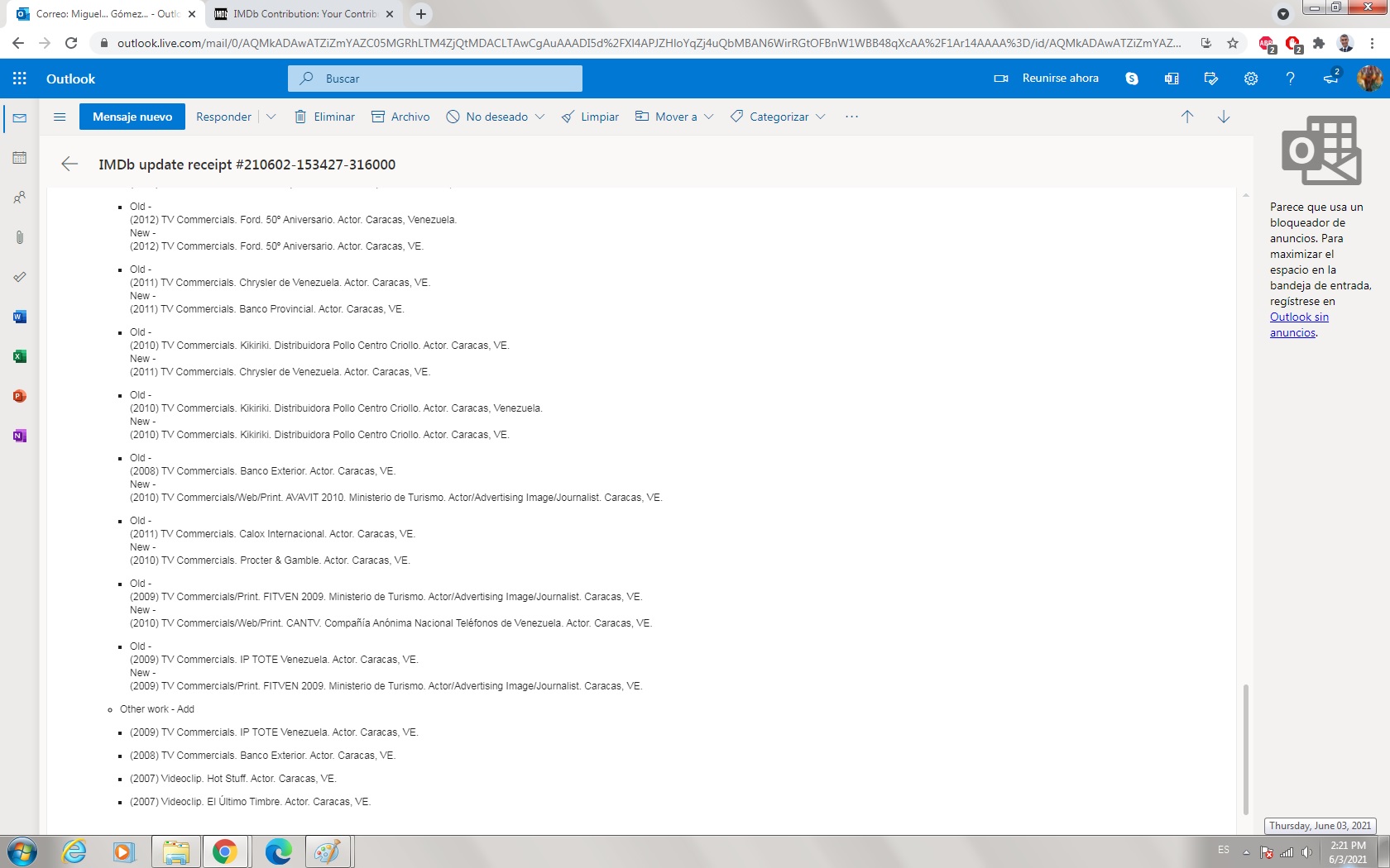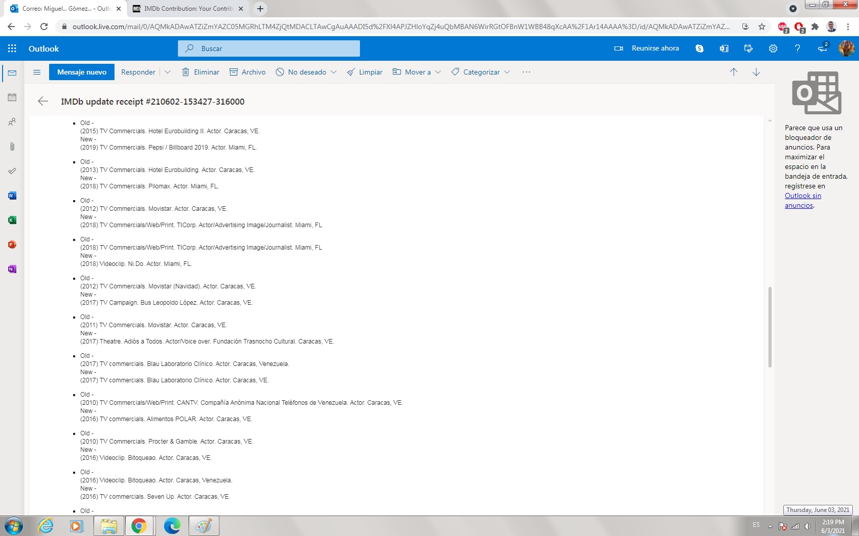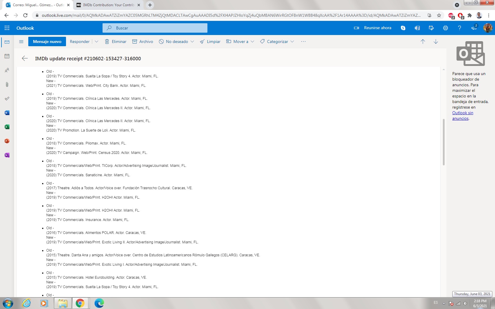 Buenos días, apreciado equipo de soporte de IMDB, mi problema es: