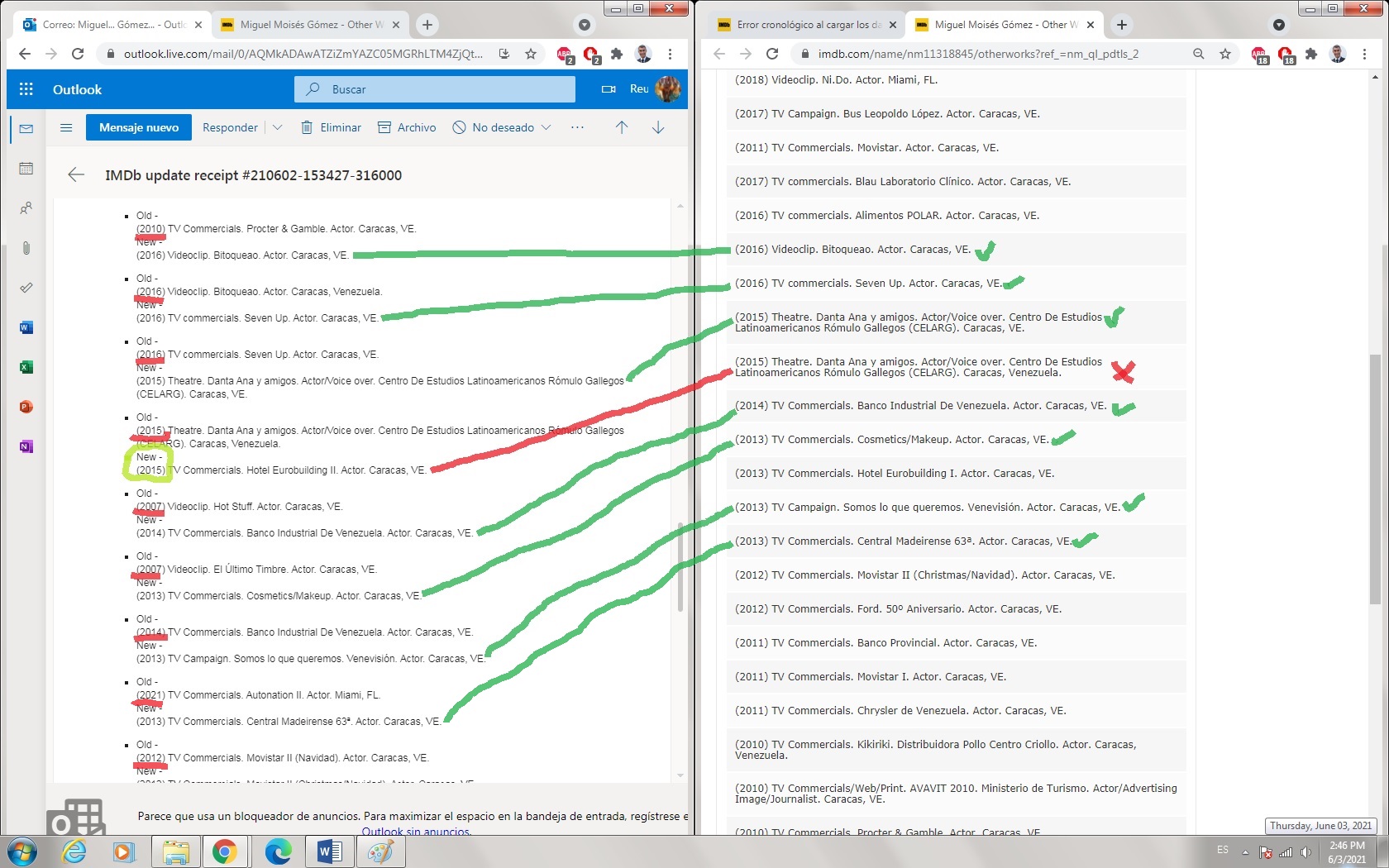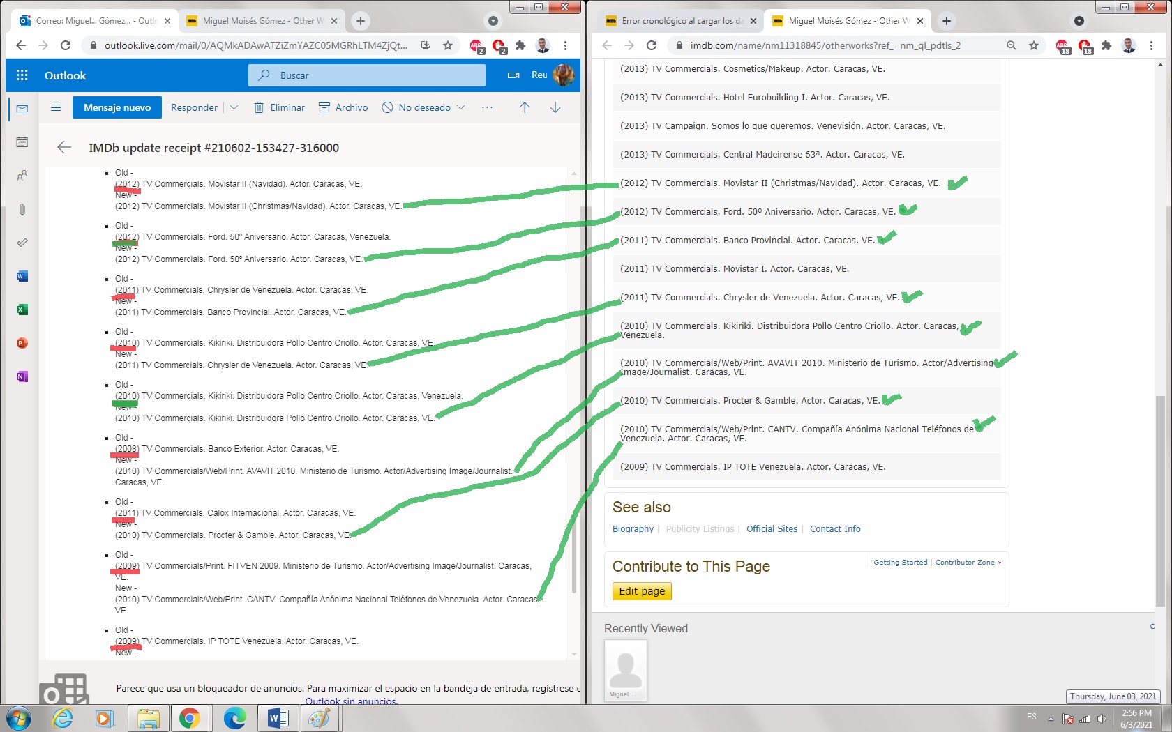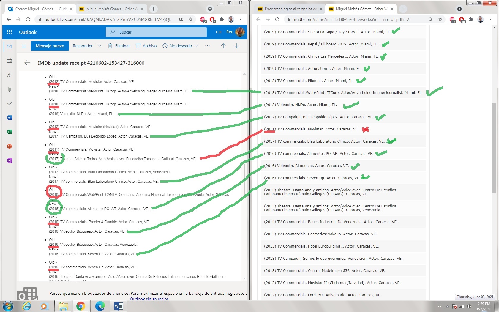 - Al cargar mi los datos en la sección: "Otros Trabajos". Biographical Information, no se cargan correctamente. Lo estoy haciendo de manera cronológica pero se cargan desordenados.