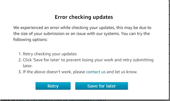 My size of the submission is just these 2 items. If you save it, and try to pull it back up, it gives the same message, or does not display anything. Like I said it is only affecting this one title.