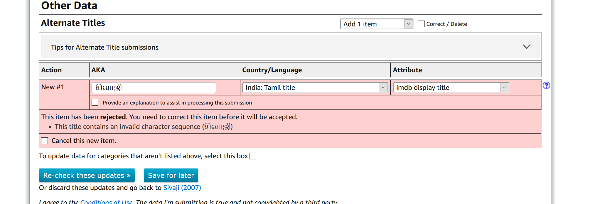 The option is only intended for the Romanized form of titles expressed in the Tamil language, until such time as letters from the Tamil alphabet can actually be accommodated by the system.