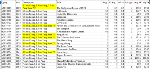 The list is really long, but just to mention some classics for today (9th of August): Casablanca, Star Wars, City Lights, Alien, Apocalypse Now, Vertigo, Dr. Strangelove, etc. I mean, the chance, that the ratings for all these movies drop on the same day is just simply impossible.