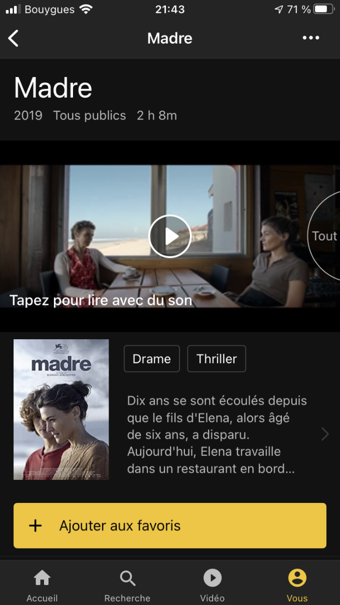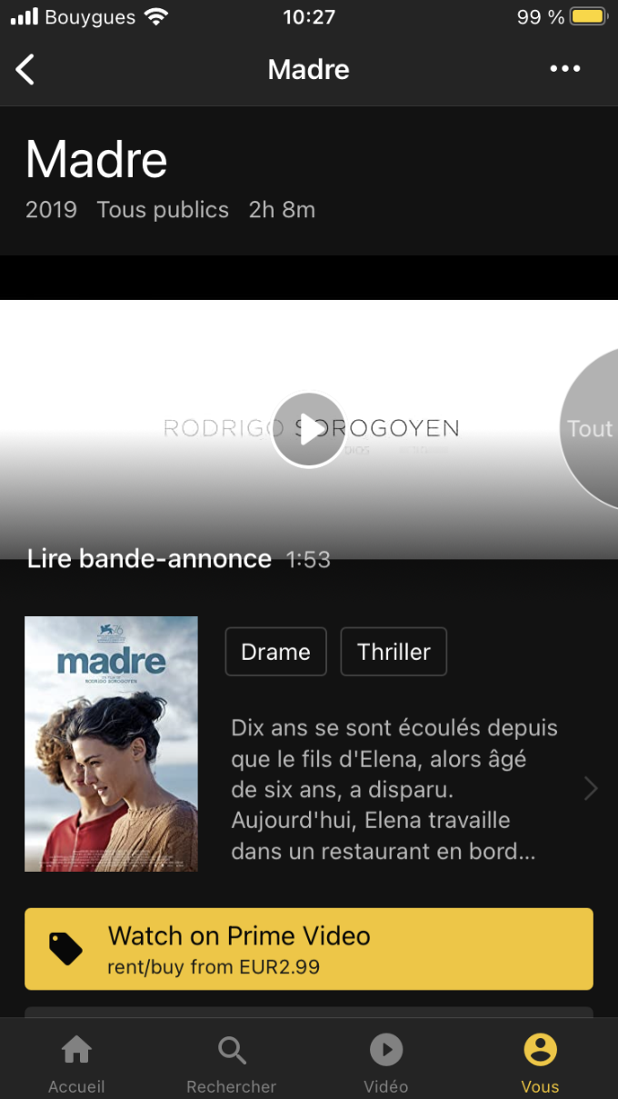 Same problem as for « Kamikaze » here above. The poster is too dull/dark (https://www.imdb.com/title/tt9234450/mediaviewer/rm1679589633), compared to the original one already registered on IMDb for France. Please find here after some evidence: https://7alyon.com/cinema-madre-de-rodrigo-sorogoyen-critique-du-film and https://store.potemkine.fr/dvd/5051889666424-madre. The main problem I have is that, despite not being the primary image, it is the one primarily displayed on the IMDb Smartphone app in France (hopefully, it is ok on the desktop version):