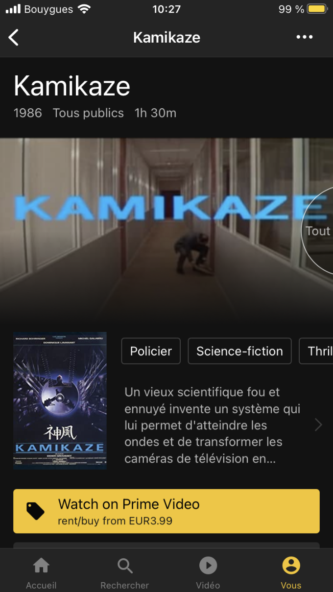 It’s the same problem as for « Kamikaze » & « Madre » here above. As there are other original posters with the proper format on this IMDb page, can you please choose another poster to be displayed on the IMDb Smartphone app for France? I do not ask for a removal of this image (as it has a correct quality), just for a change as main image on the Smartphone app.