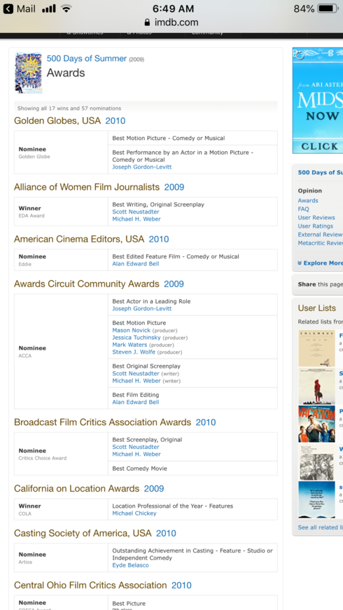 IMDB needs to change the format of the screens that show awards. Impossible to tell which awards were won vs. which were only nominated.