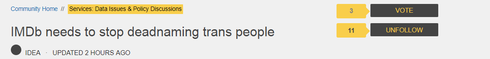 This post is a year old. And IMDb has done nothing. IMDb doesn’t care about trans people.
