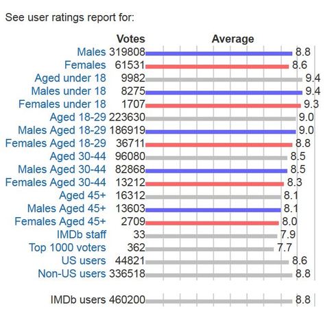 The voting demographics for each film is available. For instance, the user ratings for Interstellar (2014) is on this page:
