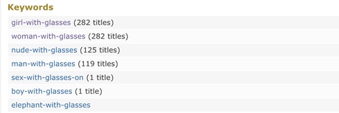 Title Search, Adult Titles Included: https://www.imdb.com/search/title/?keywords=girl-with-glasses&adult=include