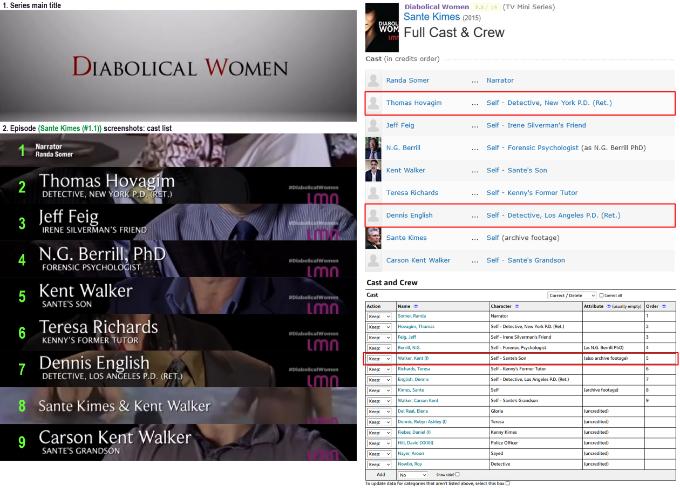 ¹By the way, using the Wayback Machine, I see that sometime between 29 Aug 2013 and 2 Feb 2014, someone vandalized some character names and the order of most of the actors, I guess annoyed by the fact that the alphabetical order, which is the correct one in this case according to the on-screen titles, has relegated Rutger Hauer to position #13 and Gwendoline Yeo to the bottom of the list. I have sent 211106-144435-102000 to fix the order. However, I've always had a question: doesn't IMDb keep the images we submitted as evidence? I mean, in 2012 I included a Tinypic link (now resubmitted to Imgur) with the above capture to support the modifications I made (I bothered to merge the scrolling title captures to create a single image, including the order numbers) and in a quick way the data manager could have verified that the further changes were probably not correct, and returned the irritating "Unable to verify" which would have been appropriate at the time.