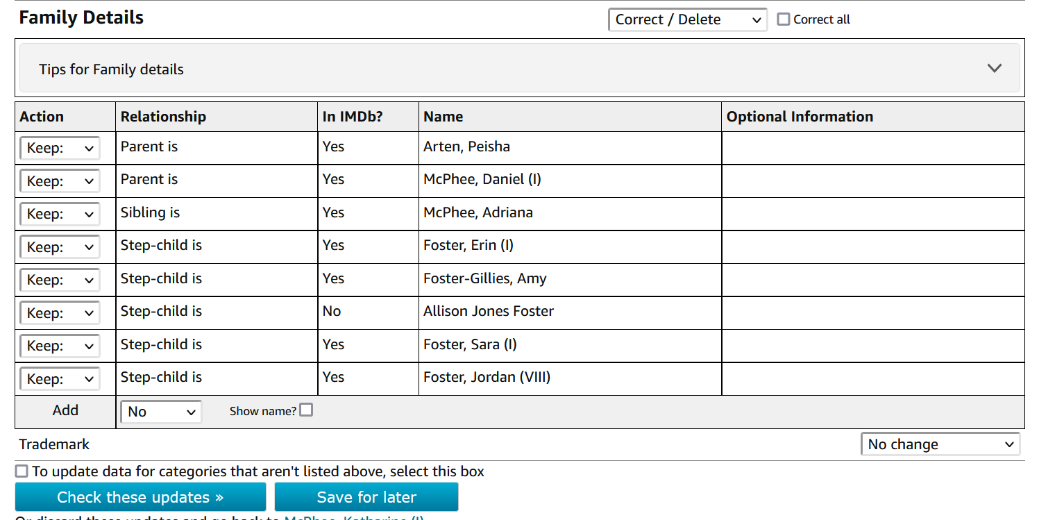 @gromit82​ thank you for the help but now I have this these questions. Is it possible for me to look at the family details section of Katharine McPhee’s page in edit mode to see for myself that they are her stepchildren NOT her children? If the answer is no that is just fine too. But if the answer is yes what do I need to do to look at the family details section of Katharine McPhee’s page in edit mode to see for myself that they are her stepchildren NOT her children?