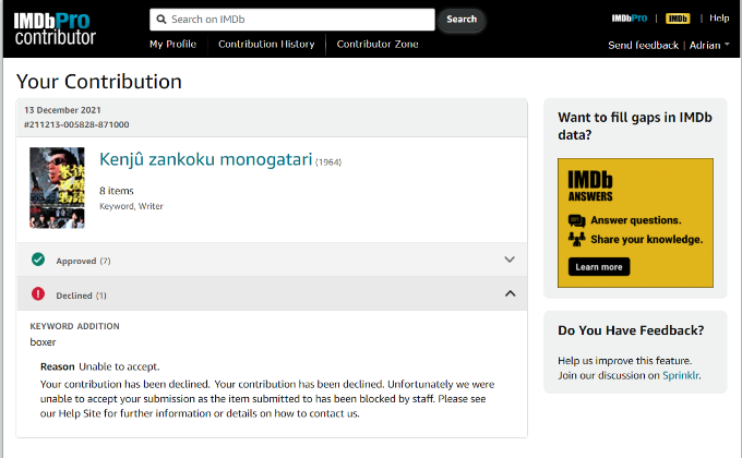 I have now manually added the Keyword "Boxer" to this title. I will also investigate why the submission was blocked to help prevent any recurrences.