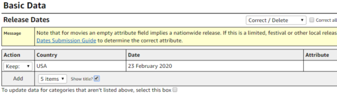 Start by selecting Correct/Delete for the data item(s), then look for the "Show Title" checkbox next to the Add Items drop-down: