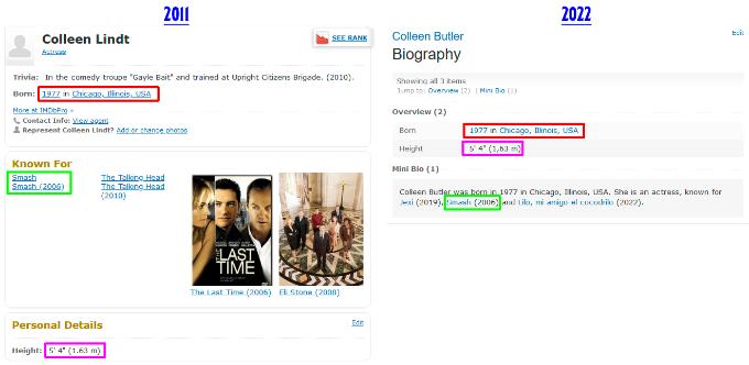 Thank you for fixing that! I must have missed that correction :) Smash was not an acting credit so you can remove that one (that was the other Colleen). There is new bio information that is not mine in the top section as well that needs to be removed- I assume that was from her profile. I was not born in the US... Let me know if you need me to share information on that front.