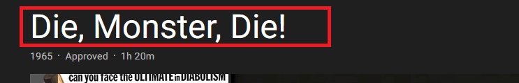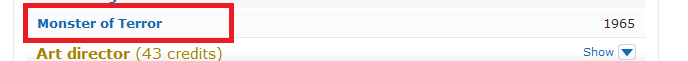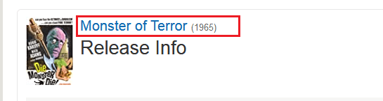 When I search for Monster of Terror, I see Die, Monster, Die, and when I go to the release info page (clicked on the year under the title, or use the All Topics menu)