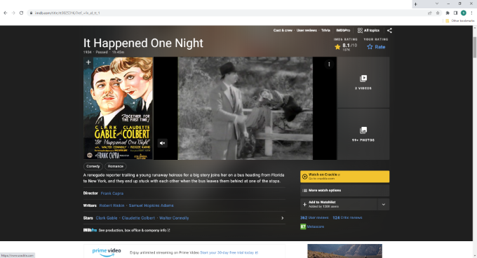 However, it is not actually available on Crackle now: https://www.crackle.com/search?term=it+happened+one+night