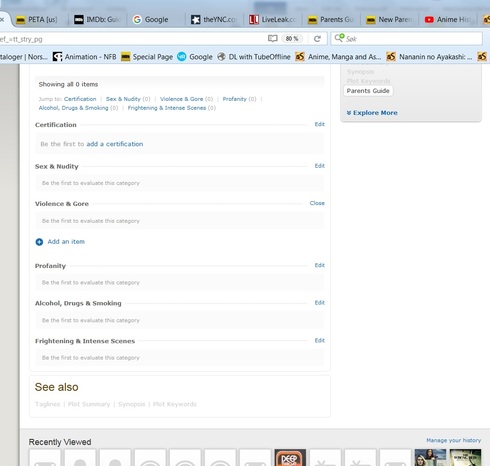 Another thing is the amount of "items". Here I'll have to agree with Sushi Xtreme. For example, if I watch an action-movie with lots of violence, I could have written every violent scenes in the "Violence/Gore" section in one time. Now, I'll have to submit each item individually, and have to delete e-mails every time I've checked on them. But I too wonder if this decision to change the Parents Guide like this was to reduce the chance of trolling, but I don't know. The red spoiler tags worked so much better for me too. But again, I still have something to learn with the New Parents Guide.