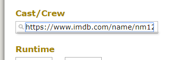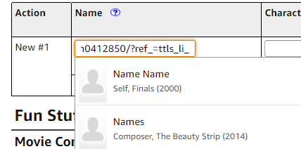 1) Adding cast/crew (that is NOT the url for Name Name):