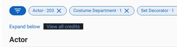 And I really hope IMDb put a 'All Credits' button at the top of the credit section on name pages rather than having to trigger a pop up (there's two different routes) to get at it, it just slows me down and is tedious to boot.