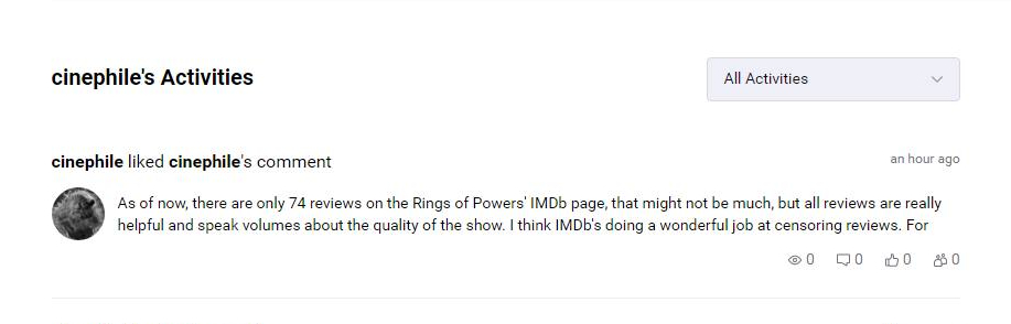 As of now, there are only 74 reviews on the Rings of Powers' IMDb page, that might not be much, but all reviews are really helpful and speak volumes about the quality of the show. I think IMDb's doing a wonderful job at censoring reviews. For once, IMDb hears our complaints about vote fraud and review bots. I hope they apply the policy they have applied to Amazon Prime's Ring of Powers to all other movies and TV Shows. Sincerely, this is one of the best things to ever happen on IMDb, a major problem has finally been solved.