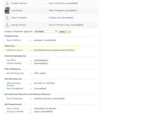 I contacted the IMDb help desk and was told that my credit was rejected because they "only store data that is reflected in the credits of the original titles" and "try to be as consistent as possible" about sticking to their policy. But I think I have shown that what would be most consistent across the site would be for silent film composers to be credited on IMDb as they have always been credited.