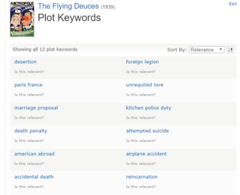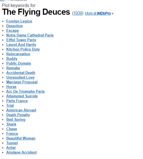 Keyword list for THE FLYING DEUCES (1939) from 2012: