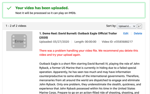 "Sorry, your video upload failed." Trailer Video Error on Scorecard