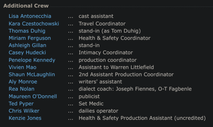Still waiting for a response, so I guess I still don't have enough proof? I'll add some more- here are screen shots from the imdb page for Season 4 Episode 10 of The Handmaid's Tale, highlighting the following overlapping crew members presented in my screenshots from the City of Toronto and IATSE: Michael Stoyanov, Jeremy Pinard, Anne Richardson, Mark Beaulieu, David Forsyth, and Penelope Kennedy.