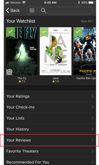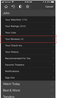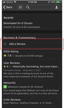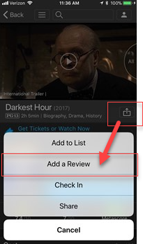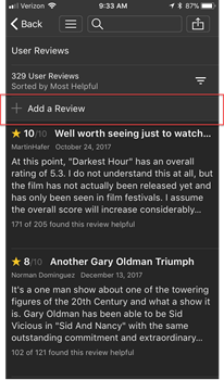 1) Tap the Share icon at the top of Title pages and tap Add Review. You can also find Add Review links at the top of the Reviews & Commentary section, or at the top of the User Reviews page.