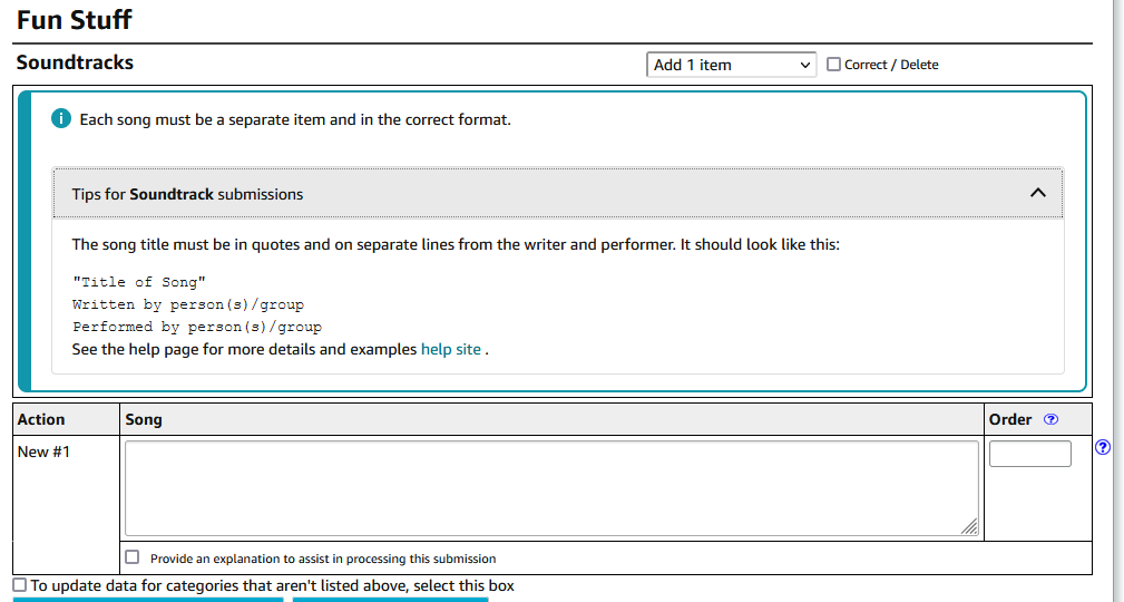 It might help if the soundtrack section had a 'tips' banner like other data types.