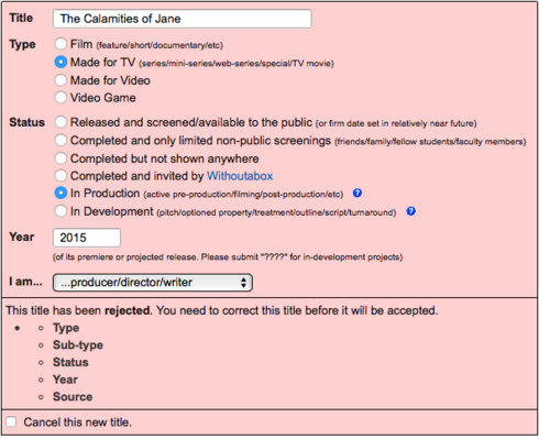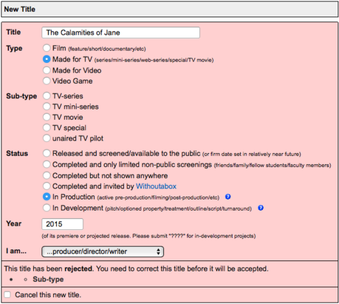 I started my submission process a few days ago and everything was running smoothly. I was entering the cast. But then I got busy, left my screen, came back a few days later, worked on some other stuff, and the window disappeared (my mistake). I didn't have a chance to save anything, so I'm starting over, but now the system won't accept my title. Is it because it's already in the system from my 1st attempt? How do I get back? Help, please!