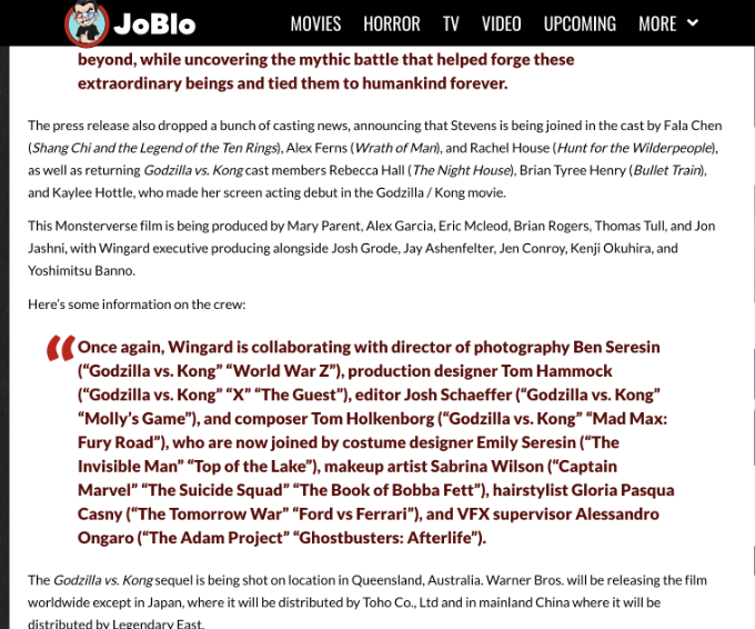 I was hair department head on Godzilla and Kong and my second and several make-up, excluding the department head who has also been rejected, several times, are credited with NO way to confirm. I actually sent an official crew list and still nada, why?????