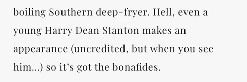 This isn’t Harry Dean. It’s my late husband, Timothy Scott. They knew each other and were often considered for the same roles. This is Tim Scott as Shagbag and next to him, Scott Wilson as Harvey Oberst. Tim, Scott and Harry Dean were the same type of character actors, were friends and worked together.