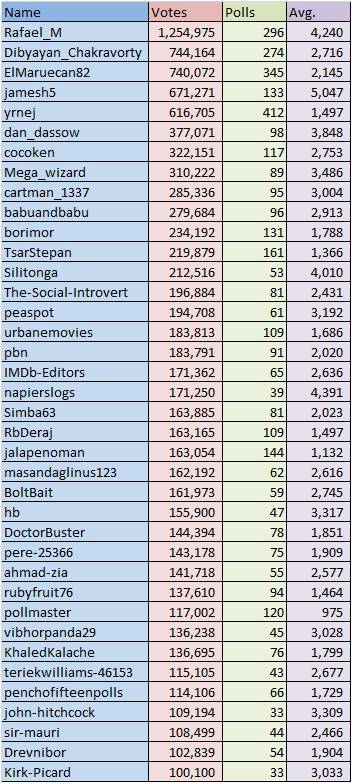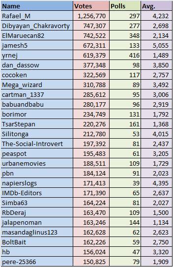 votes for an average of 3,033 votes per poll. I will contact the IMDb