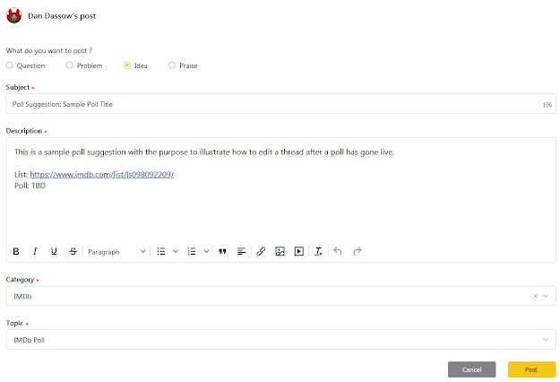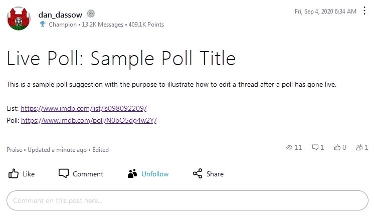 This is an example of how to edit the first post in a thread once the poll has gone live: