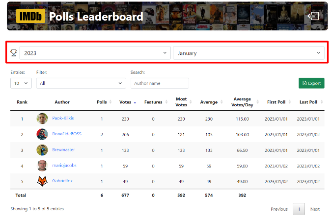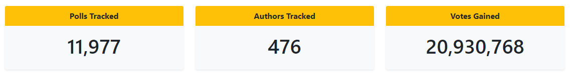 - Example: This page shows a list of poll authors with the most number of votes they gained on their polls published in January 2023. - All polls are updated almost every week!