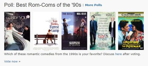 11 July 2017: Best Rom-Coms of the '90s - http://www.imdb.com/poll/XA6cTHhjsms/ (A poll by jamariana)