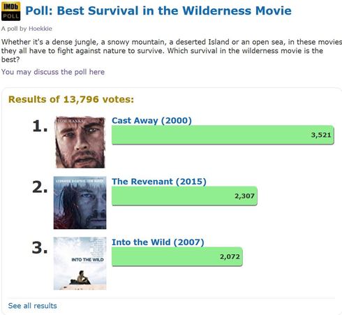 25 November 2017: Best Survival in the Wilderness Movie - http://www.imdb.com/poll/vunRWb1zzZQ/ (A poll by Hoekkie)