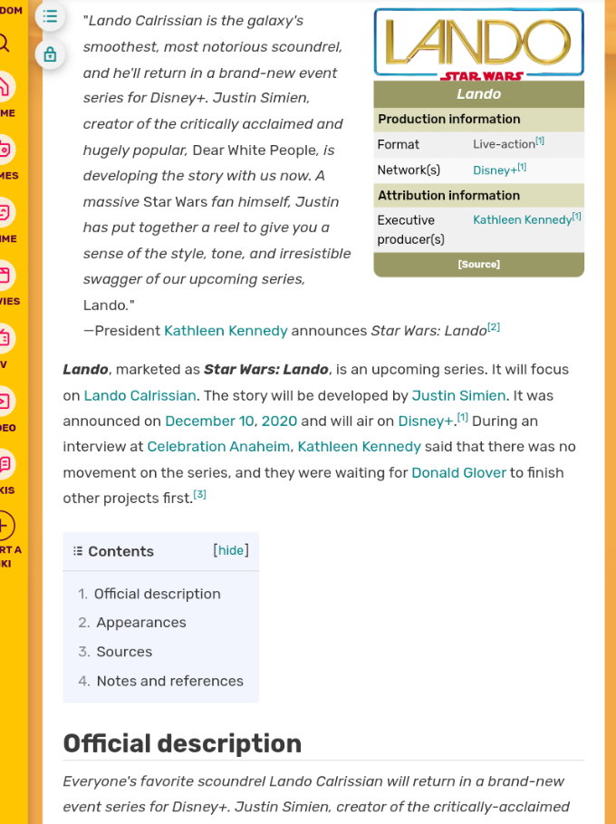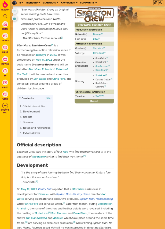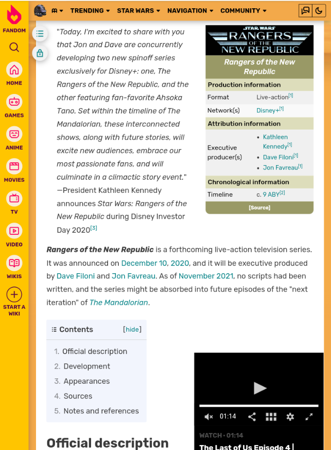 Disney's new streaming media service, Disney+ launched November 12, 2019 with the debut of The Mandalorian (2019) starring Pedro Pascal. It was the first of many "Star Wars" franchise live-action episodic series to be destined for the new subscriber service. DisneyPlus followed-up by adding The Book of Boba Fett (2021), Andor (2022), and Obi-Wan Kenobi (2022) to its line-up. Other live-action series greenlit for the streamer include Ahsoka (2023), The Acolyte (2023), Skeleton Crew (2023), Rangers of the New Republic, and Lando. The two cornerstones of Disney's strategy to drive and maintain subscriber growth for its Disney+ streaming service are based on mining content from the 'Star Wars' and 'Marvel' franchises.