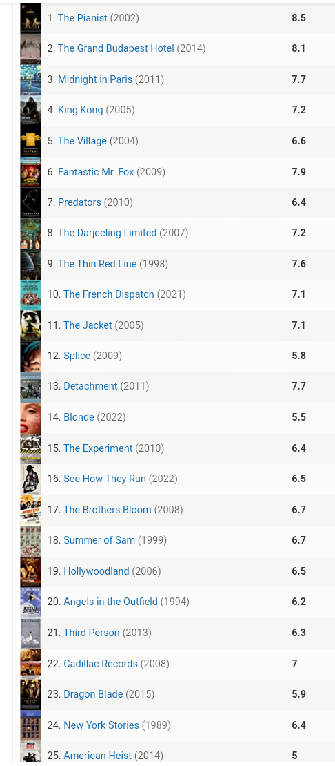 Which of these Adrien Brody films is your favorite?
