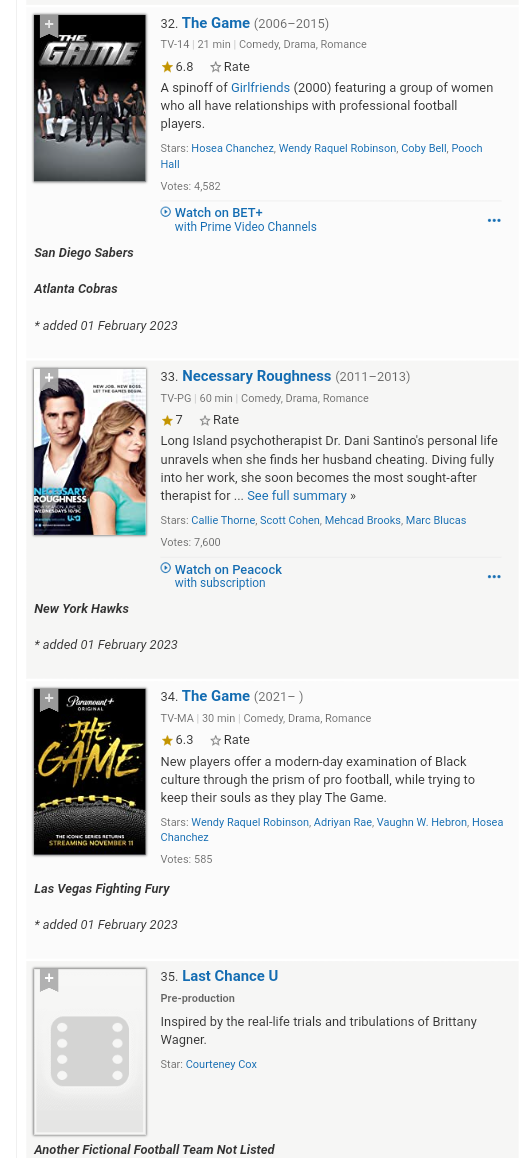 More Recent Fictional American-Style Football Teams